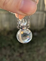A 22" stainless steel chain featuring an elegant, round, glass container filled with a yellow mustard seed and other various add-ins of your choosing.
