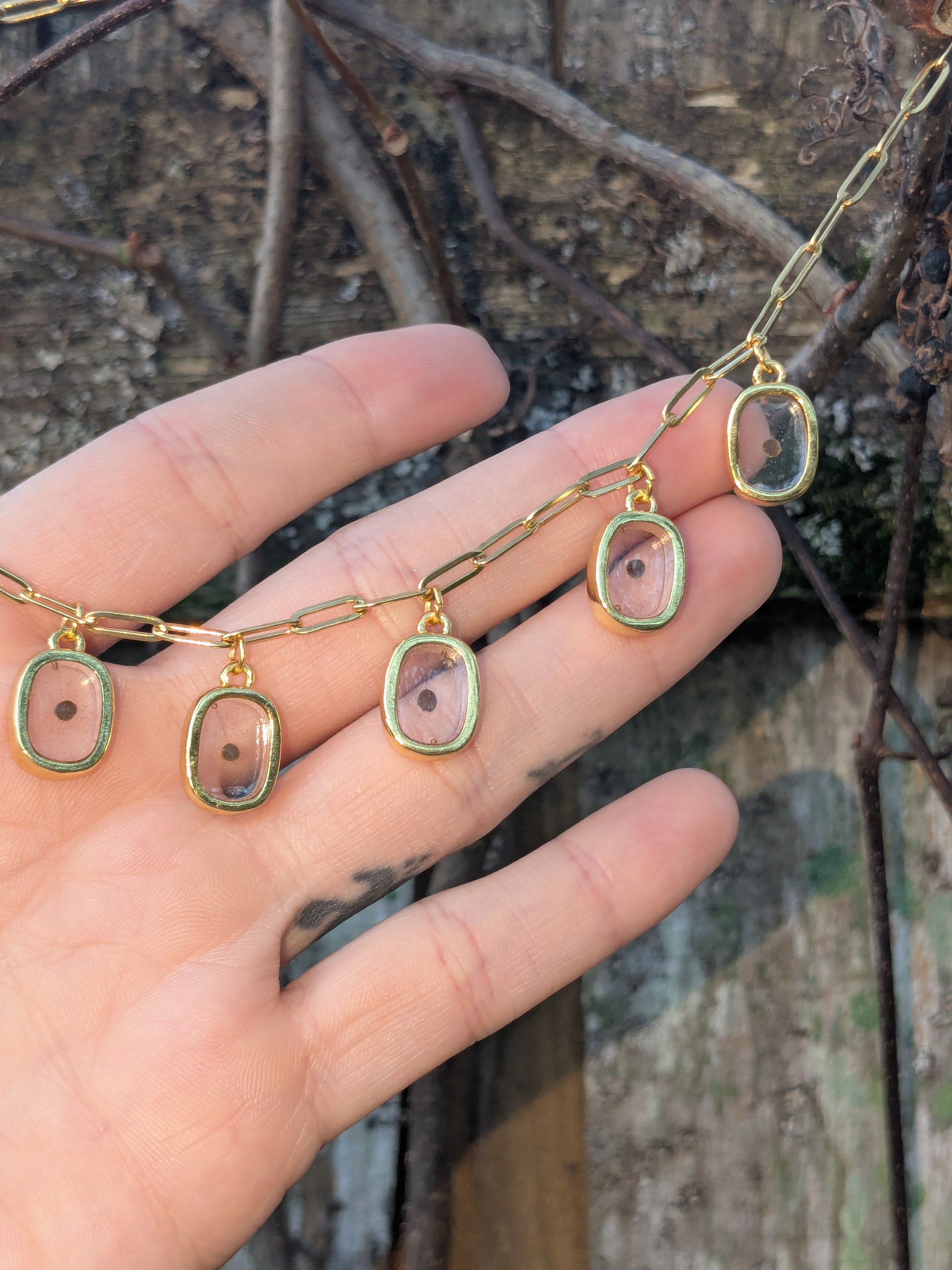 Includes a 16" gold plated (stainless steel) paperclip chain.
