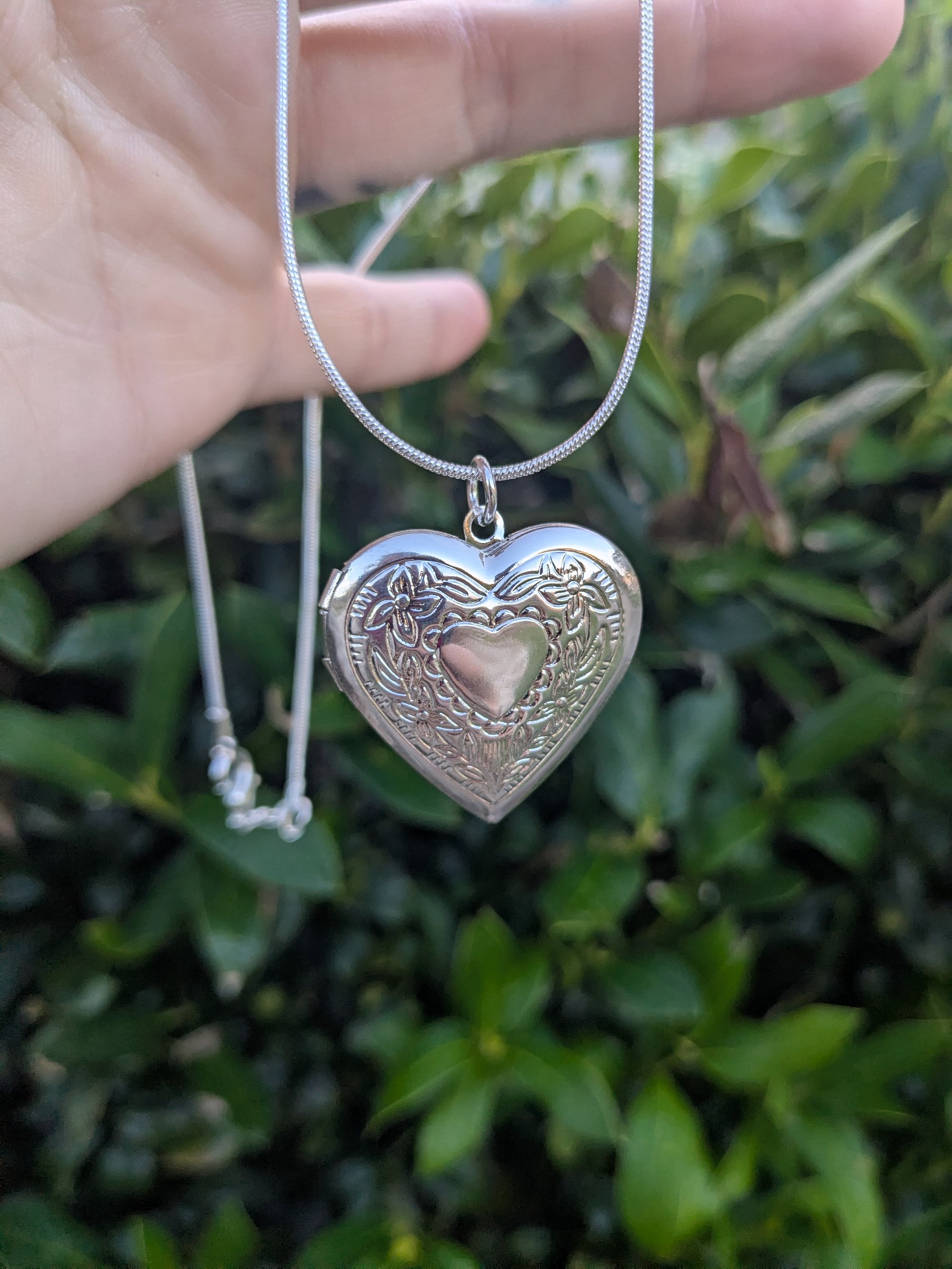 Featuring a cute sterling silver heart locket and a 16" sterling silver chain, this piece is 100% customizable!