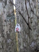 Featuring a white and pink porcelain teacup with a dainty yellow mustard seed inside!