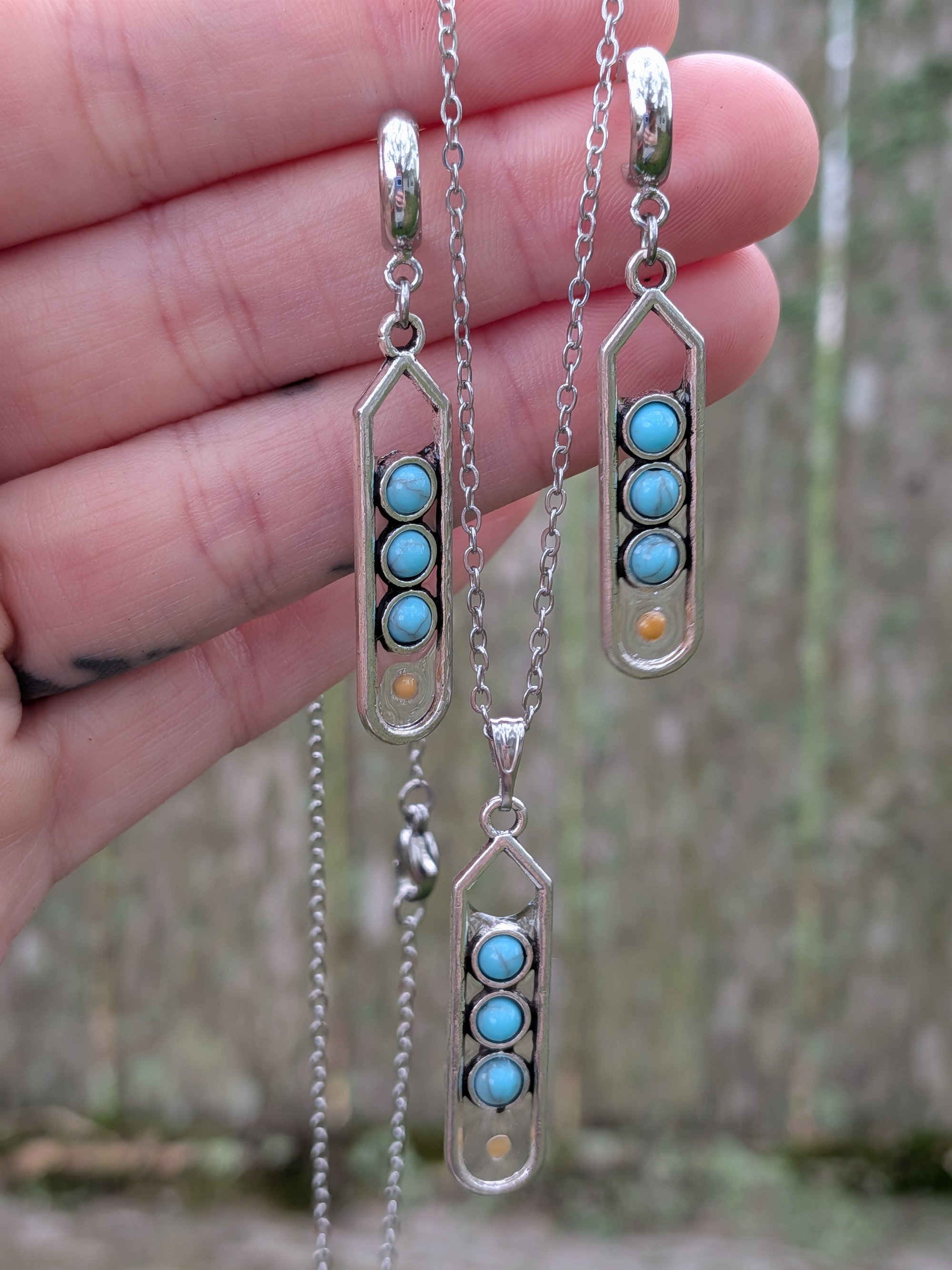 Turquoise Mustard Seed Necklace and Earring Set