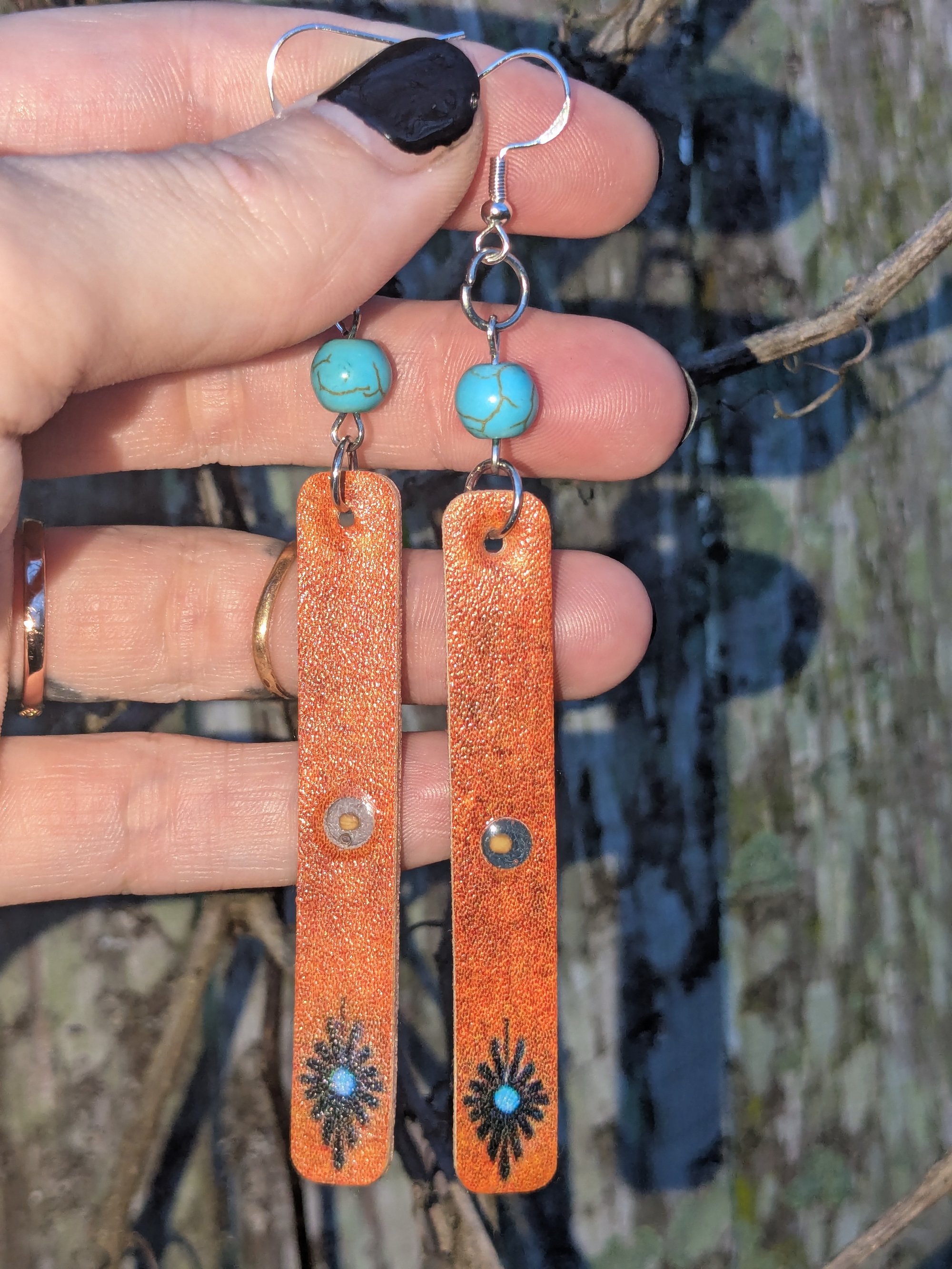 Western style PU leather featuring turquoise accents and a dainty yellow mustard seed in clear epoxy.